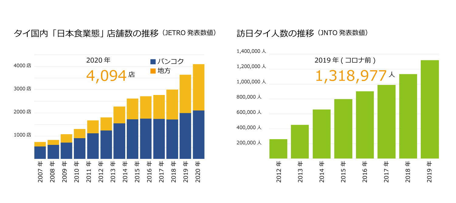 大の親日国と言われるタイ王国。コロナ前の2019年迄、中間・富裕層の増加によりタイ人の訪日客数は右肩上がりで増加していました。そして、この数年の訪日が難しかった期間でも、店頭では日本をイメージしたキャンペーンや商品の販売が実施され、タイに居ながら日本の雰囲気を楽しもうと、日本を感じられる施設の人気が高くなっていたり、タイに住む日本人として、ここまで自分の母国である日本を愛してくれるタイの方に感謝の想いしかありません。